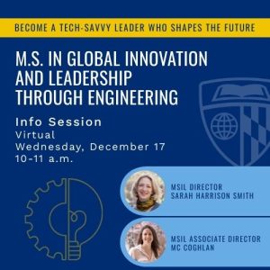 Apply by March 15, 2026 for fall 2026 admission to the Johns Hopkins MS in Global Innovation and Leadership through Engineering Program.
